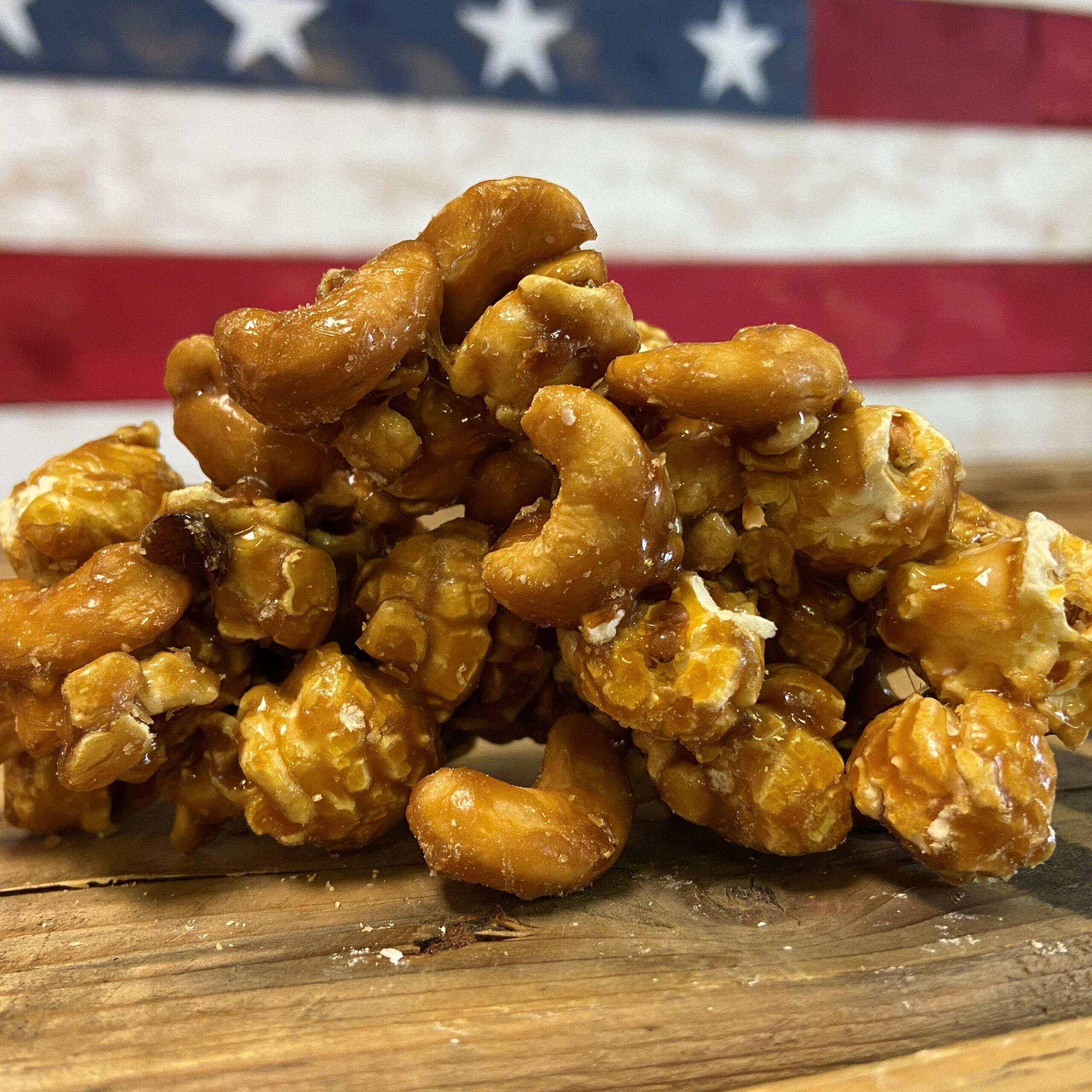 Our very own caramel popcorn with a ton of cashews.  We do not skimp on the cashews!  We believe that if you want cashews you should get cashews!